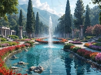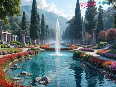 Puzzle Fontanna, Park, Staw, Kwiaty