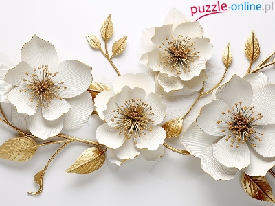 Biało-złote, Listki, Kwiaty, Grafika, Gałązki