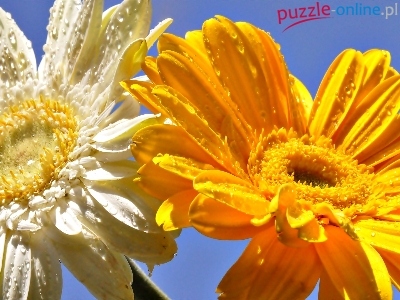 Puzzle Gerbery, Kwiaty, Krople