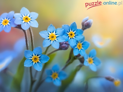 Rozświetlone, Niebieskie, Niezapominajki, Kwiaty, Tło, Grafika