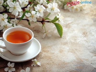 Puzzle Herbata, Kompozycja, Filiżanka, Kwiaty