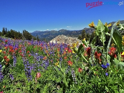 Kwiaty, Łąka, Sierra Nevada, Kalifornia, Góry