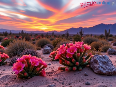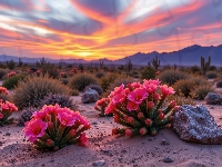 Kwiaty, Niebo, Kolorowe, Kwitnące, Kępki, Góry, Kamienie, Kaktusy, Roślin