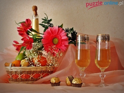 Puzzle Kwiaty, Szampan, Kieliszki, Słodycze