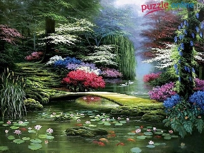 Puzzle Kwiaty, Ogród, Kładka, Drzewa