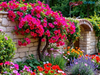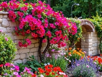 Puzzle Kolorowe, Ogród, Mur, Kwiaty
