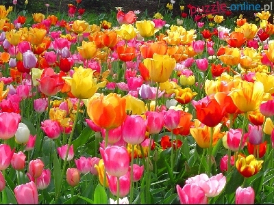 Puzzle Kolorowe, Kwiaty, Tulipany