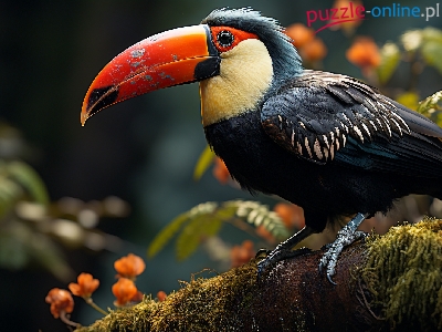 Puzzle Konar, Ptak, Tukan, Kwiaty
