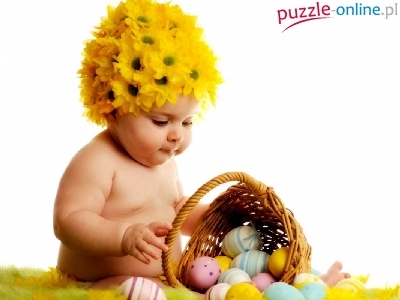 Puzzle Kwiaty, Dziecko, Koszyk, Jajka