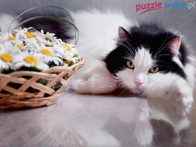 Puzzle Kwiaty, Romantyczny, Kotek, Koszyk