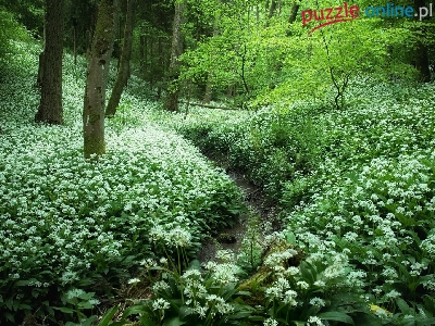 Ścieżka, Drzewa, Las, Kwiaty, Wiosna, Czosnek niedźwiedzi