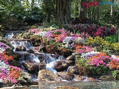 Puzzle Kwiaty, Wodospad, Las, Kamienie