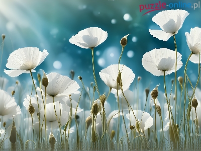 Białe, Kwiaty, Maki, Grafika, Pąki