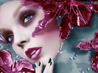 Puzzle Kwiaty, Kobieta, Makijaż, Palce
