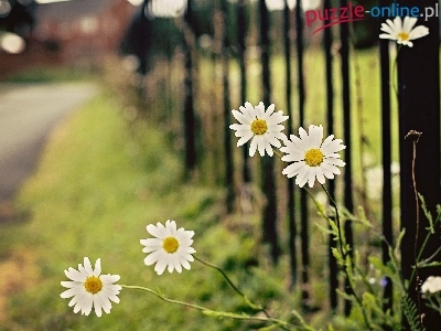 Puzzle Margerytki, Kwiaty, Płot