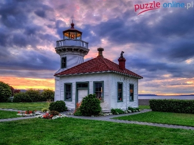 Kwiaty, Chmury, Latarnia, Morska, Morze