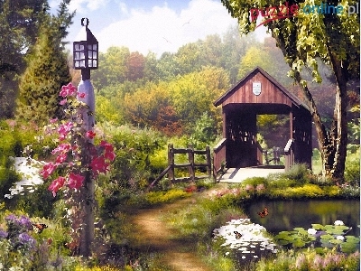 Ścieżka, Most, Ogród, Kwiaty, Kryty