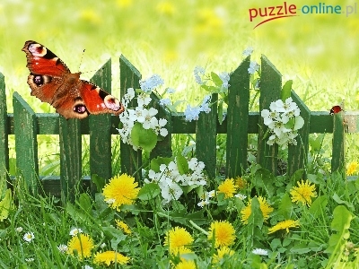 Kwiaty, Wiosna, Płotek, Motylek, Łąka