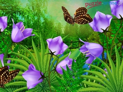 Puzzle Motylki, Kwiaty, Trawa