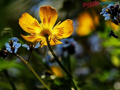 Puzzle Kwiaty, Żółte, Niebieskie, Rozmycie