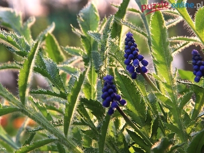 Puzzle Kwiaty, Szafirki, Niebieskie, Liście