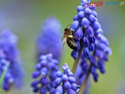 Puzzle Kwiaty, Szafirki, Niebieskie, Pszczoła