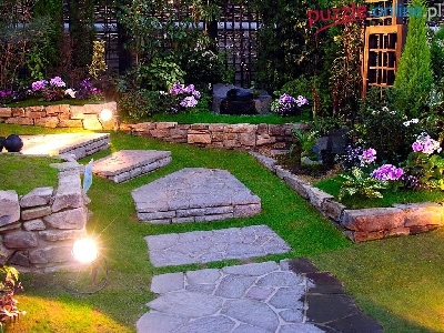 Puzzle Ścieżka, Ogród, Kwiaty, Murek