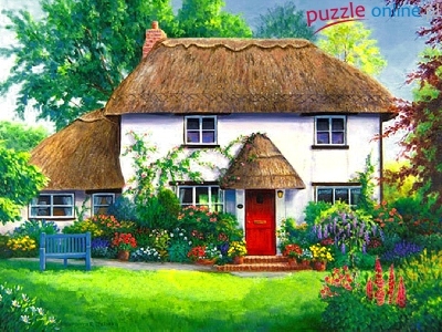 Puzzle Kwiaty, Dom, Ogród, Ławka