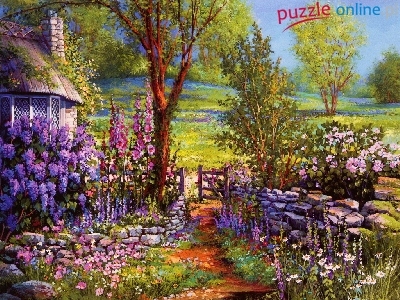 Puzzle Kwiaty, Dom, Ogród, Ścieżka