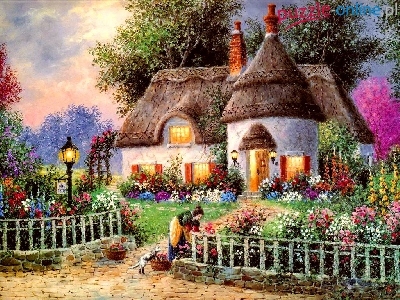 Puzzle Kwiaty, Dom, Ogród, Płotek