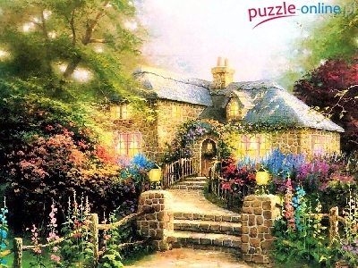 Puzzle Kwiaty, Dom, Ogród, Płotek
