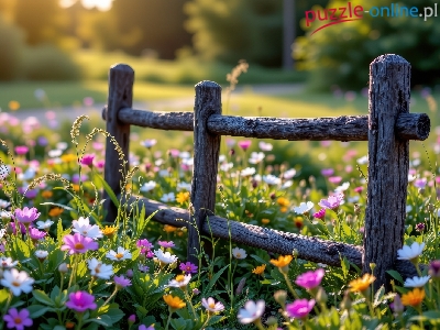 Puzzle Kwiaty, Łąka, Ogrodzenie