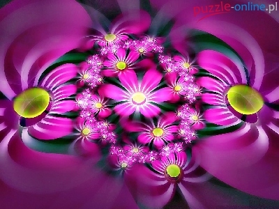 Puzzle Kwiaty, Fioletowo, Żółte, Fraktal