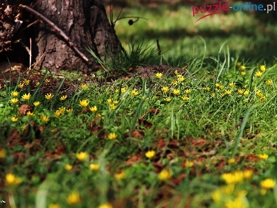 Kwiaty, Drzewo, Ziarnopłon Wiosenny, Żółte, Trawa