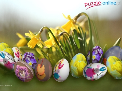Kwiaty, Jajeczka, Wielkanoc, Kolorowe, Żonkile, Święta