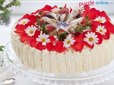 Puzzle Kwiaty, Tort, Owoce, Płatki