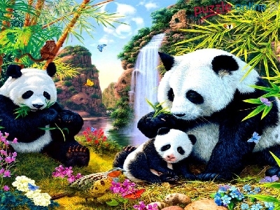 Puzzle Kwiaty, Misie, Pandy, Rośliny