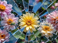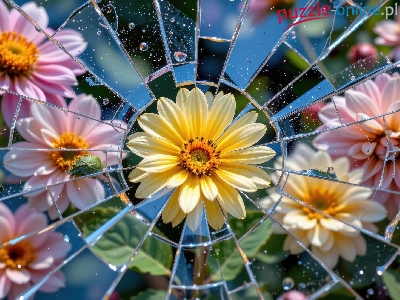 Puzzle Szkło, Kwiaty, Pęknięte, Pęknięty ekran