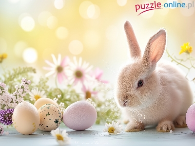 Wielkanoc, Kwiaty, Pisanki, Grafika, Królik