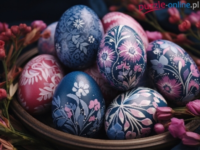 Puzzle Pisanki, Wielkanoc, Malowane, Kwiaty