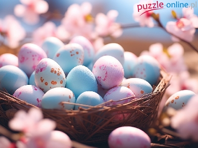 Koszyk, Wielkanoc, Pisanki, Kwiaty, Niebieskie, Różowe, Różowe