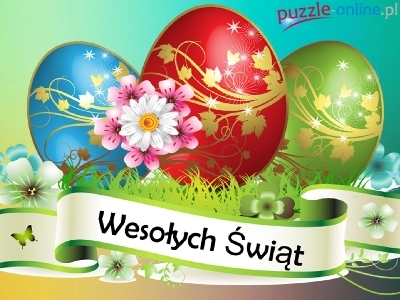 Puzzle Kwiaty, Wielkanoc, Pisanki, Wstążka