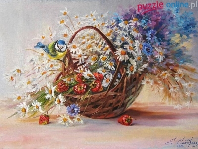 Puzzle Kwiaty, Koszyk, Polne, Poziomki