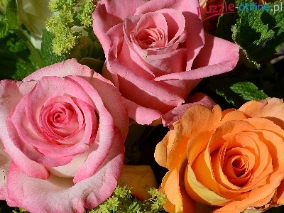 Puzzle Kwiaty, Różowe, Pomarańczowe, Róże