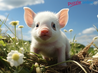 Świnka, Kwiaty, Prosiak, Grafika, Niebo