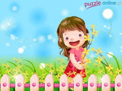 Puzzle Kwiaty, Dziecko, Radość, Płot