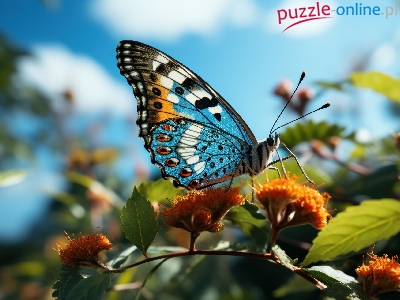 Motyl, Kwiaty, Roślina, Grafika, Niebo