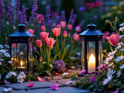 Tulipany, Dwa, Różowe, Kwiaty, Lampiony, Świecące, Białe