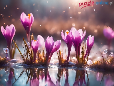 Puzzle Kwiaty, Krokusy, Różowe