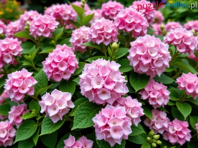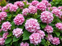 Hortensja, Kwiaty, Różowe, Krzew, Listki